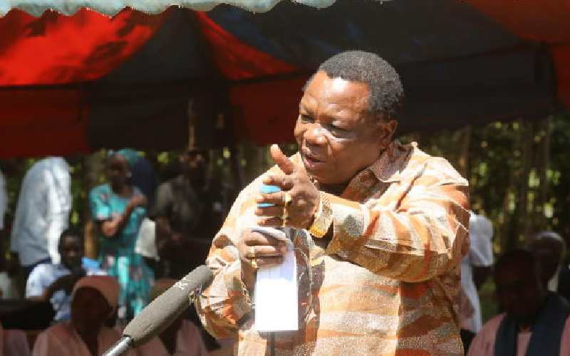 COTU Sec. General Francis Atwoli address mourners during burial service of Mzee Issac Omwangale at Mulwanda in Khwisero on September 9, 2022. [Benjamin Sakwa, Standard]