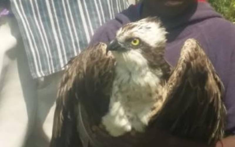 A rare migratory bird known as Osprey that flew to Kenya, covering a distance of 6,948 Kilometres to land in Usalo village, West Yimbo Location in Siaya County. [File]