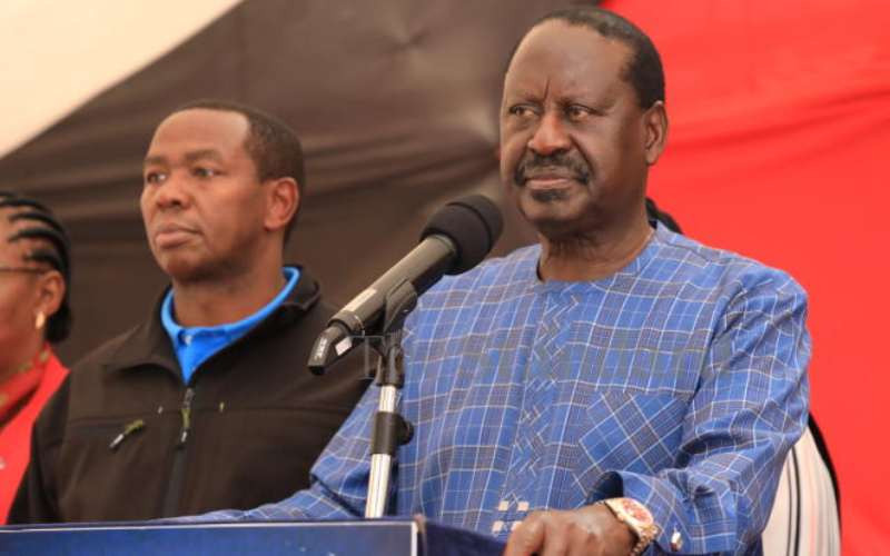 Azimio la Umoja leader Raila Odinga addresses the press at Jaramogi Odinga Foundation offices, Upper Hill, Nairobi, during a past event. [Edward Kiplimo, Standard]