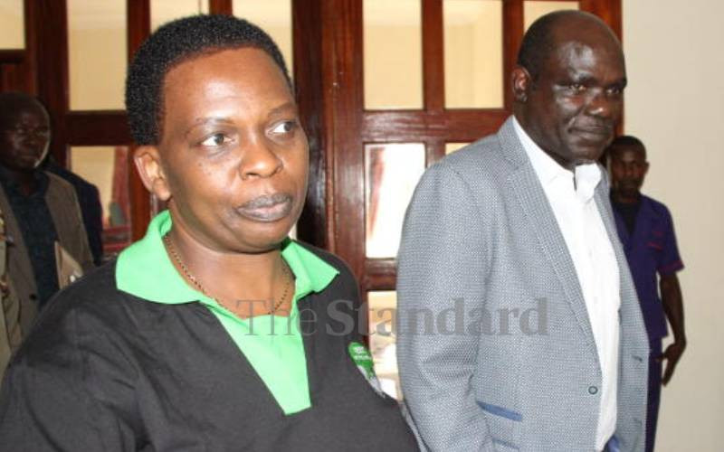 IEBC Deputy CEO Ruth Kulundu with Chairperson Wafula Chebukati (right) during a past meeting in Migori County. [Caleb Kingwara, Standard]