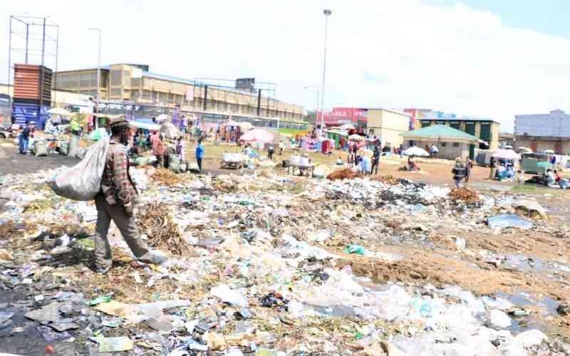 The street boys scavenge through the garbage as they spy on their possible targets. [Benjamin Sakwa, Standard]