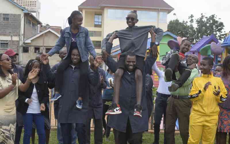 Parents, teachers and pupils celebrate at Sukari Presbyterian Academy in Kahawa Sukari, Kiambu County after the 2022 KCPE scored high marks. [Jenipher Wachie, Standard]