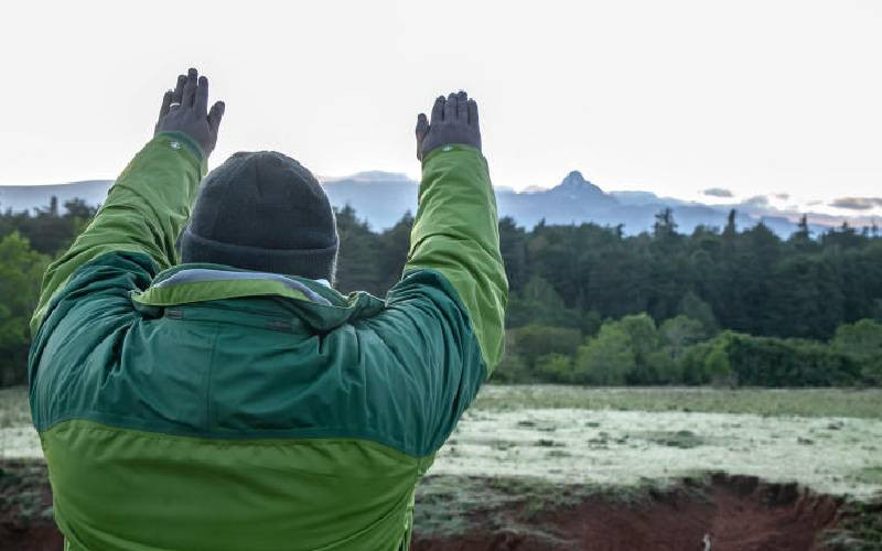 Around him, the morning mist clung to every living thing, emphasizing nature's authority and power over all. This was the second day of a series of treks up Mt Kenya that have become part of a daily routine for the Deputy President.