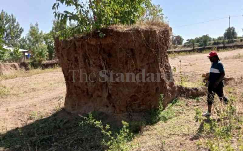 Stand-alone grave that has been spared at a sand harvesting site in Kobala, a village in Karachuonyo, Homabay County. [Denish Ochieng, Standard]