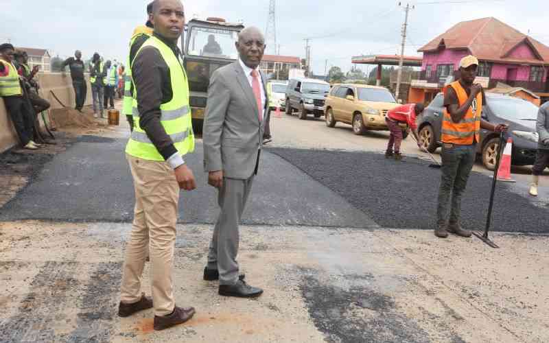 Limuru Mp John Kragu Chege supervises KENHA as they erect bumps at Rironi area along Nakuru Nairobi highway following a string of accident that have claimed numerous lives. [George Njunge, Standard]