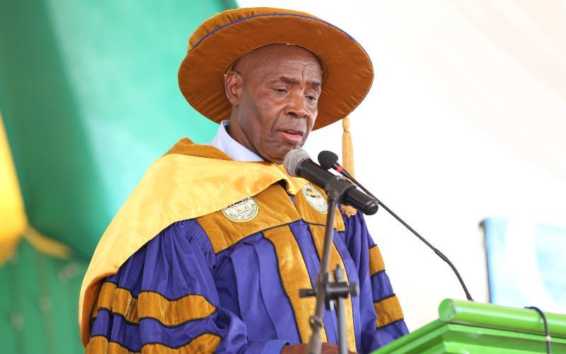 Education CS Ezekiel Machogu during Garissa University's 4th Graduation in Garissa. [Abdimalik Hajir, Standard]