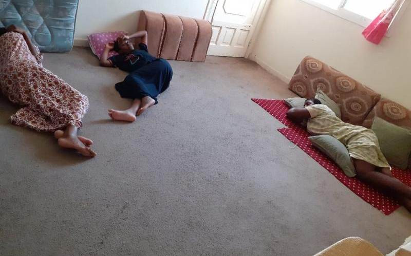 Three Ugandan girls lie on a floor in their holding rooms in Saudi after running from abusive employees. [File, Standard]