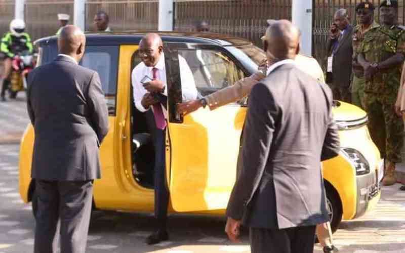 President William Ruto drives himself in an electric car from State House to KICC during the Africa Climate Summit. [Silas Otieno, Standard]