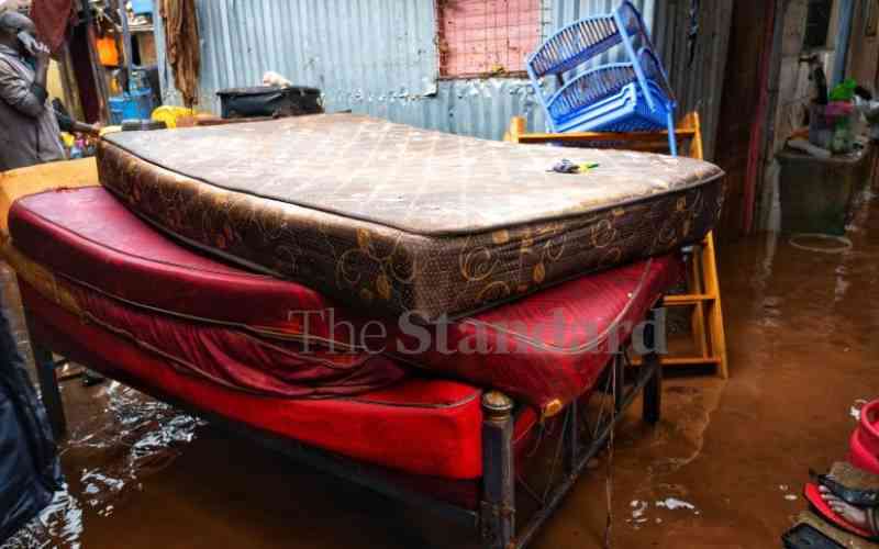 A man attempts to salvage his belongings after his house was washed away by floods in Mathare. [Robert Tomno, Standard]