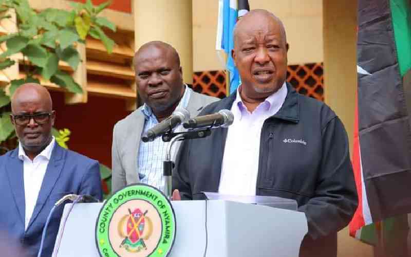 Governor Amos Nyaribo addressed the media Friday morning from the County Headquarters. [Eric Abuga, Standard]