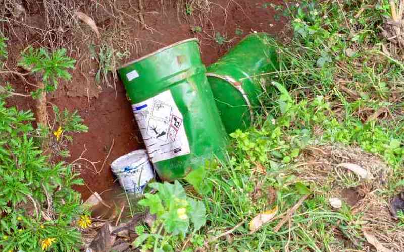 On Saturday, a truck ferrying 22 tonnes of sodium cyanide en route to Uganda overturned, spilling its lethal cargo in Kambembe, Rironi.