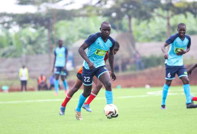 Harrison Amalemba of Musingu Boys' High School in action against Kalangala School of Tanzania during the Federation of East Africa Secondary Schools Sports Association (FEASSSA) games here in Mbale, Uganda on August 24, 2024. [Courtesy]