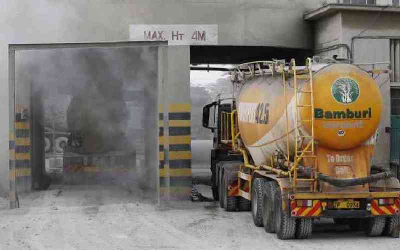 Bamburi Cement trucks collect cement from a Silo storage facility in Industrial Area Nairobi. [Stafford Ondego, Standard]