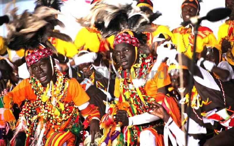 A winning school from Turkana County perform a Turkana Folk Song at the 96th edition of the annual Kenya Music Festival in Eldoret. [File, Standard]