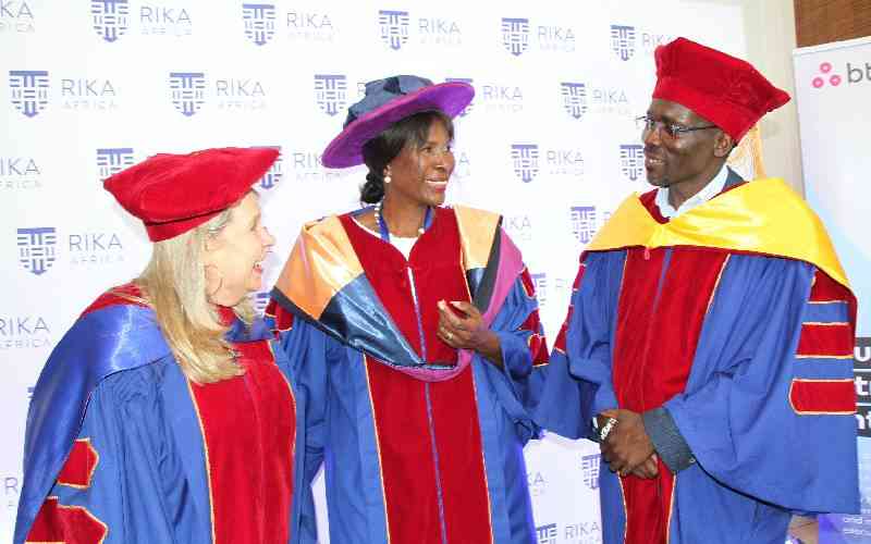 RIKA Africa Faculty Debbie Hollis, RIKA Africa Executive Director Susan Githuku and Standard Group board member and RIKA Faculty Thomas Omondi during the RIKA leadership programme class of 2025 graduation at the Rika Africa Summit 2025, in Nairobi, on July 31, 2025. [David Gichuru, Standard [
