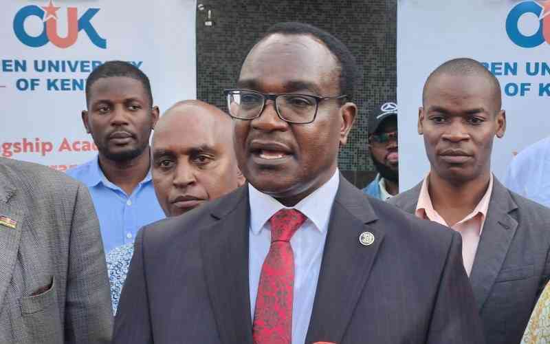 CS, Ministry of Education Migos Ogamba addresses the press in Naivasha where he rooted for the Open education system noting that it would held bring down the cost of university education once fully rolled out. [Antony Gitonga, Standard]