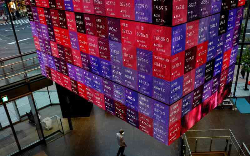 An electronic quotation board displays the Nikkei 225 stock prices on the Tokyo Stock Exchange in Tokyo on September 11, 2025. [AFP]