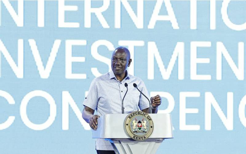 President William Ruto addressing delegates during the Kilifi County International Investment Conference (KCIIC) at Vipingo Ridge in Kilifi County. [File, Standard]