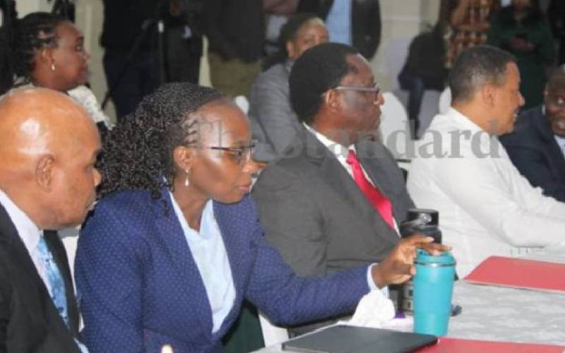 Members of the panel of experts on compensation of protest victims, led by Prof Makau Mutua, after taking oath at KICC, Nairobi, on September 4, 2025. [Benard Orwongo, Standard]