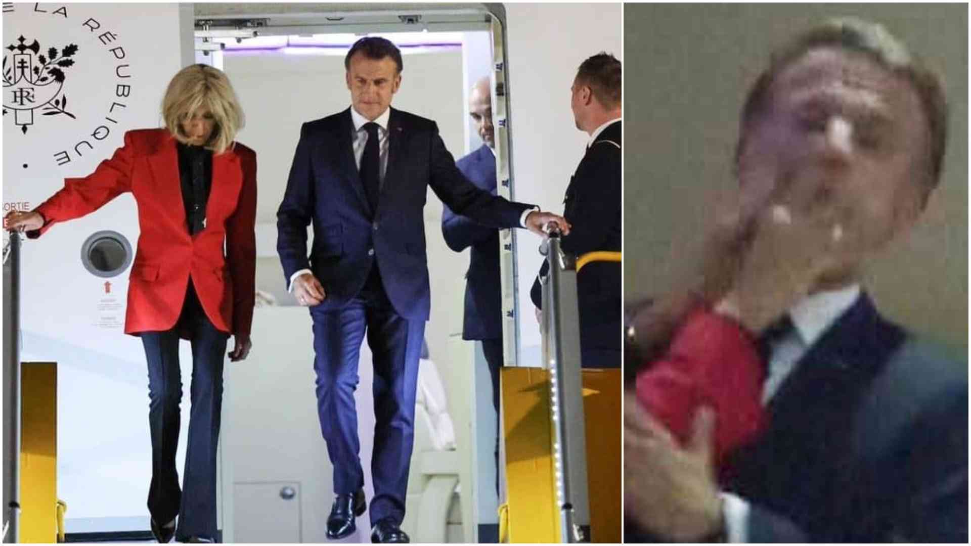 All eyes were on a playful moment between Macron and his wife, Brigitte, captured just as the presidential plane door swung open in Hanoi on Sunday evening.