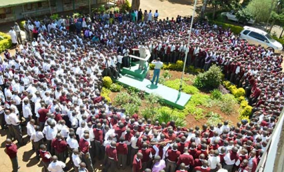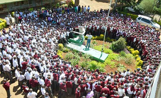 Student of Meru National School being addressed by their principal Mr Sirus Mwirigi on 3rd March 2016 after the 2015 KCSE national results were announced. PHOTO PETER MUTHOMI.