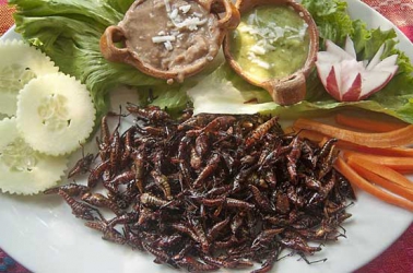 Mexican prehispanic meal of crickets and vegetables