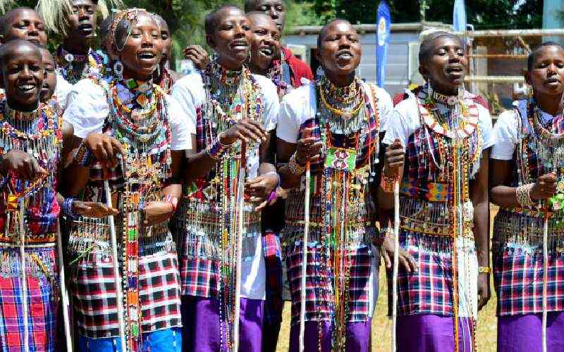 Pupils from Nkoilale primary rehearse before their performance during the Kenya Music Festival in Kisumu on September 19, 2022. [Michael Mute, Standard]