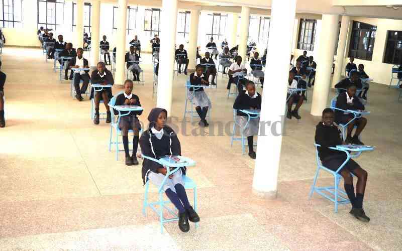 Kakamega Hill School class 8 candidates in the examination room waiting to write their first paper on October 30, 2023. [Benjamin Sakwa, Standard]