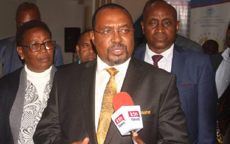 Kenya Primary Schools Head Teachers Association (KEPSHA) National Vice Chairman, Johnson Nzioka, addressed the press on August 10, 2023, at KICD in Nairobi. [Edward Kiplimo, Standard]