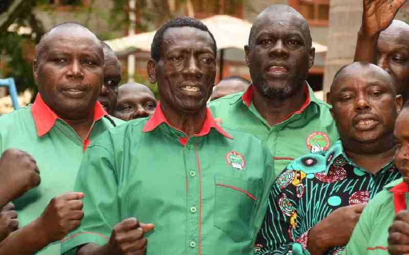 KNUT Secretary General Collins Oyuu (centre). [File, Standard]