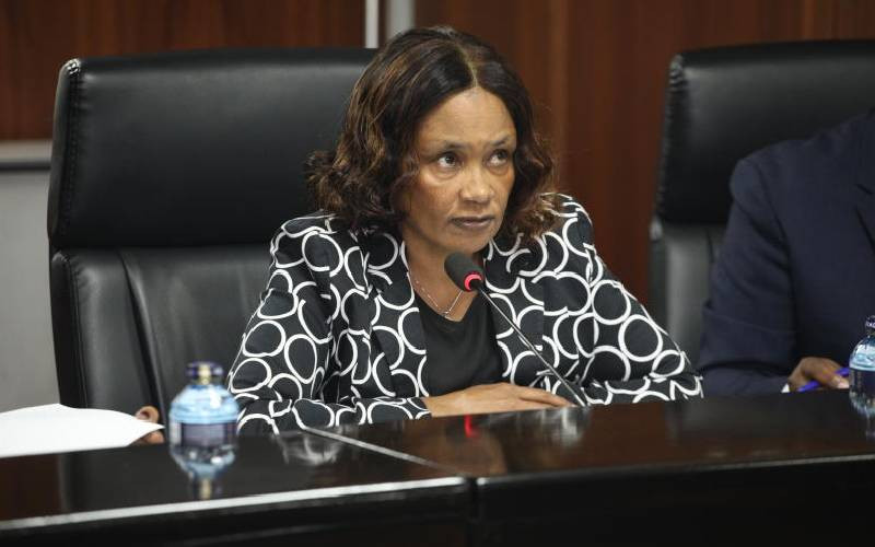 Teachers Service Commission Ag CEO Eveleen Mitei before the National Assembly's Committee on Education at Parliament Buildings, Nairobi. [File, Standard]