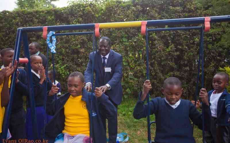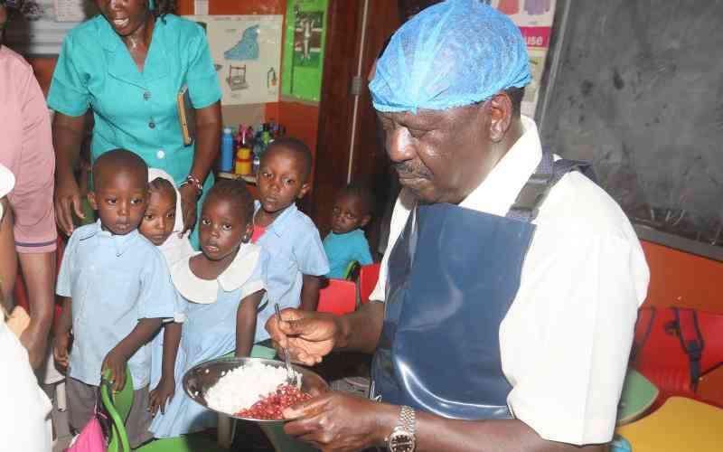 ODM Leader, Raila Odinga served a meals at Khadija Early Development Education [EDC], Mombasa on December 13, 2024. [Omondi Onyango,Standard]