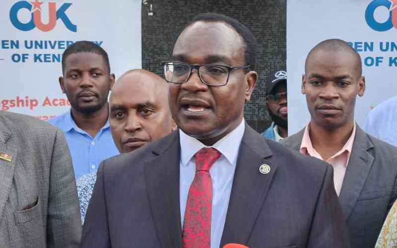 Education CS Julius Ogamba addresses the press in Naivasha on June 6, 2025. [Antony Gitonga, Standard]