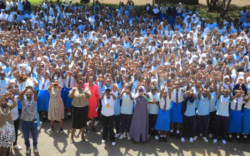 Pangani Girls School, Nairobi Principal Dr Millicent Odhiambo and students celebrate KCSE 2025 results at the school. The school scored a mean grade of 9.718. January 10th, 2026. [Elvis Ogina Standard]