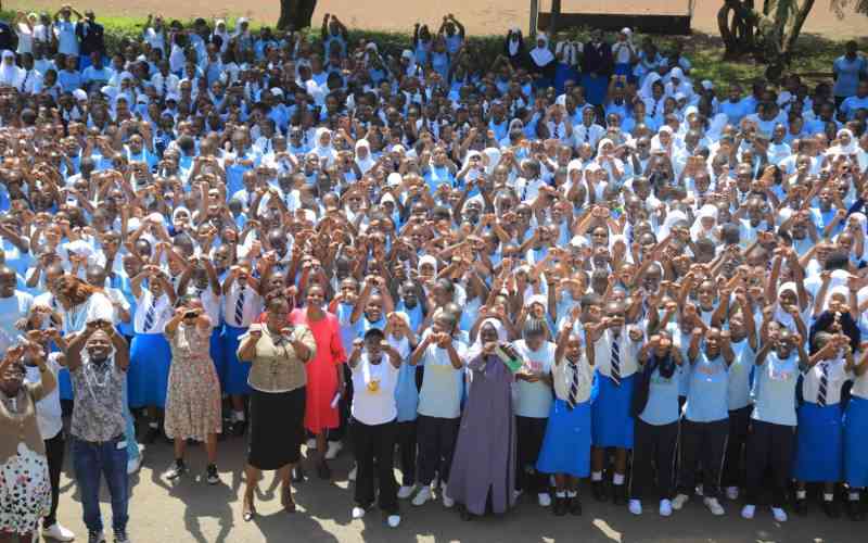 St Teresa's Nyangusu girls school- Kisii, Principal Meble Barasa and students celebrate KCSE 2025 results on January 9, 2026. [Sammy Omingo, Standard].
