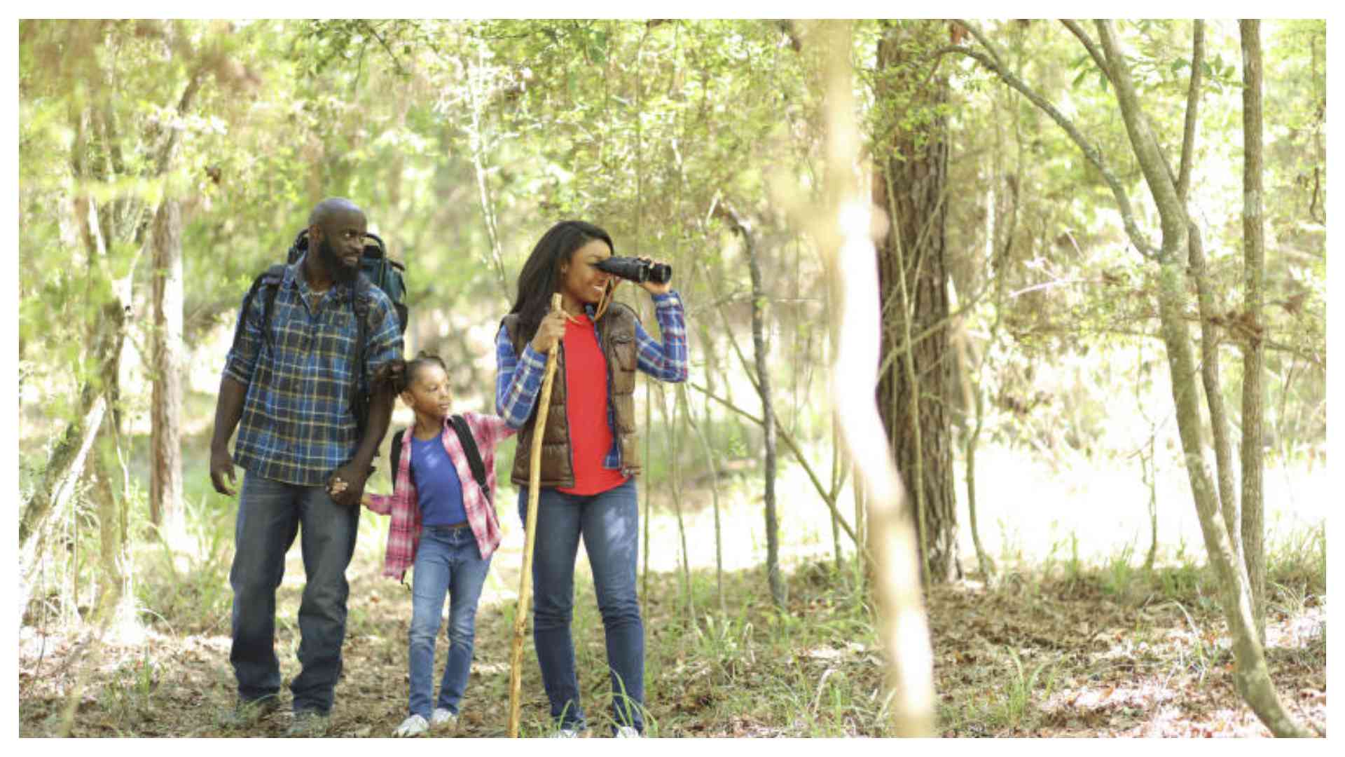 African descent family taking a summer or autumn vacation trip. They enjoy camping and hiking in the forest. [ Getty Images ]