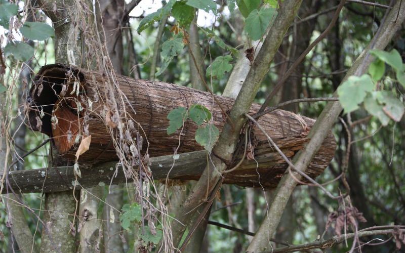 John Kemoi's Traditional bee hive at Marishoni village, Molo Sub County. He has more than 50 bee hives located at forest area on his farm including 10 langstroth, 40 Kenya Top Bar and 5 traditional. [Boniface Thuku, Standard]