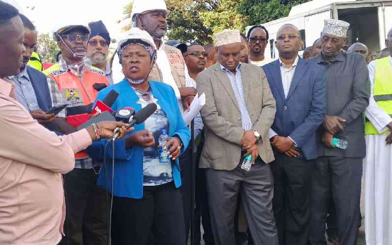 Lands CS Alice Wahome addresses the media at the site of the collapsed building in South C , Nairobi, on January 7, 2026. [Elvis Ogina, Standard]