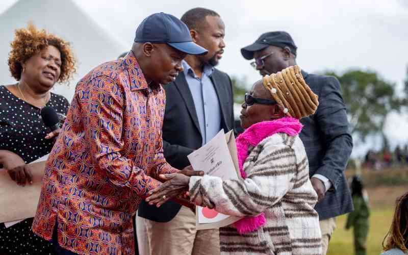 DP Kithure Kindiki hands over title deeds to victims of the Mai Mahiu floods that left over 60 dead and many others injured. [Antony Gitonga, Standard]