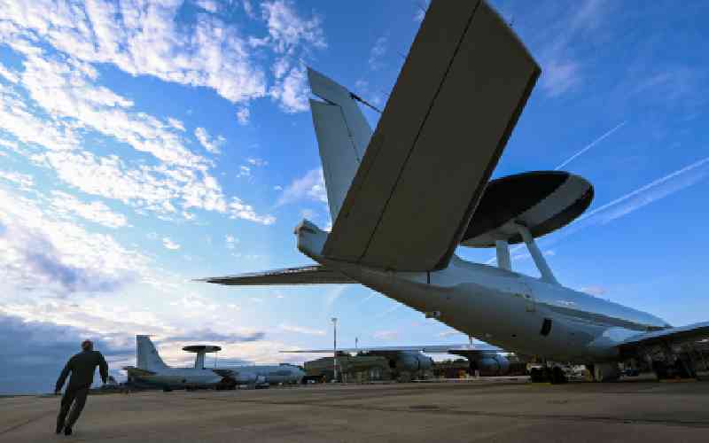 A crew member checks a NATO Airborne Warning and Control System (AWACS) aircraft, which participates in the German-led multinational exercise Air Defender 23, at the military base of Geilenkirchen, western Germany, on June 20, 2023. German police said on August 23, 2024. [AFP]