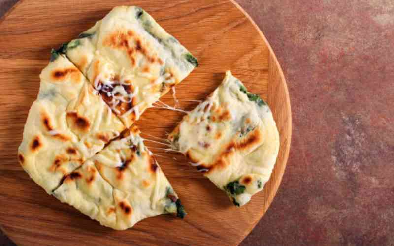 Fill the flat dough with cheese and vegetables, then roll it up into a ball again to create a cheese and vegetable-filled dough.