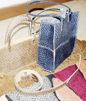 "Fish skins tanning pollutes less and the leather is scratch, water and stain resistant and does not need polishing," says Kirdi Director, Tom Ogada.The leather is available in suede and glazed finishes and can be dyed in a variety of colours.
