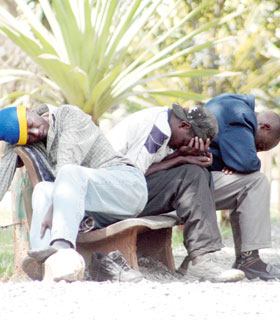 Is this proof that like minds flock together, even in catching forty winks at Nairobi’s Jevanjee Gardens? Photo: Evans Habil/Standard