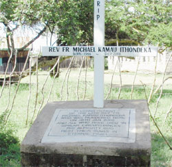 A memorial plaque of the late Catholic priest Michael Kamau. Photos: Boniface Thuku/Standard