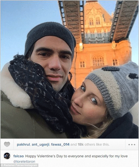 The Colombian posted a picture with his wife on Instagram later in the day, with the caption "Happy Valentines to everyone especially my love."