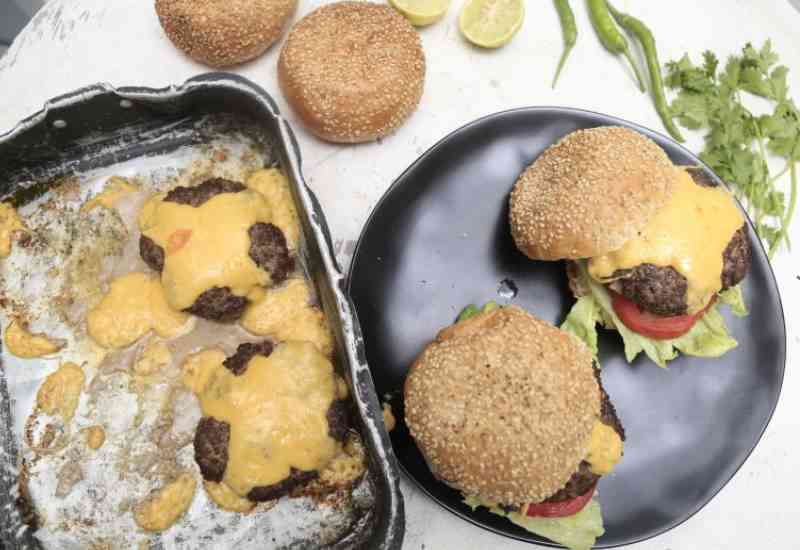 Set bun tops in place and your burger is ready to eat. Enjoy!