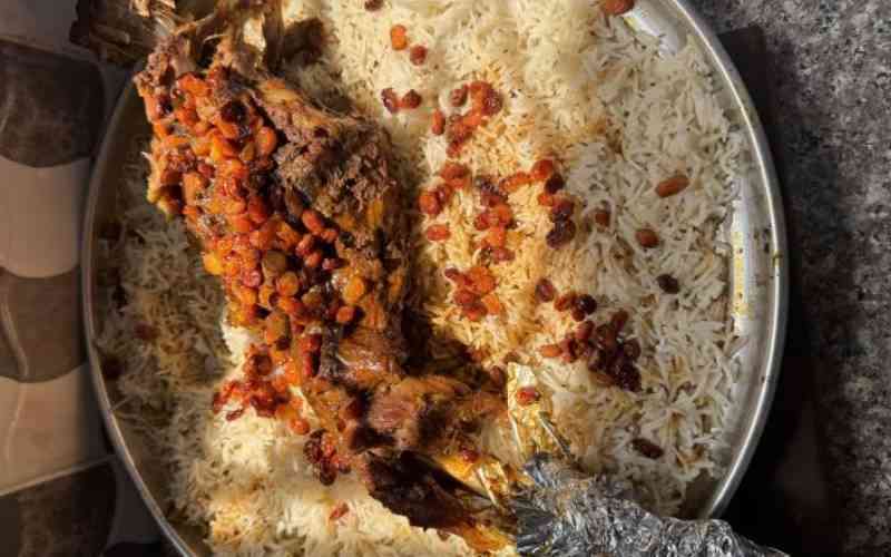 Happy weekend! Today we make whole roasted goat leg with raisins and jeera rice
