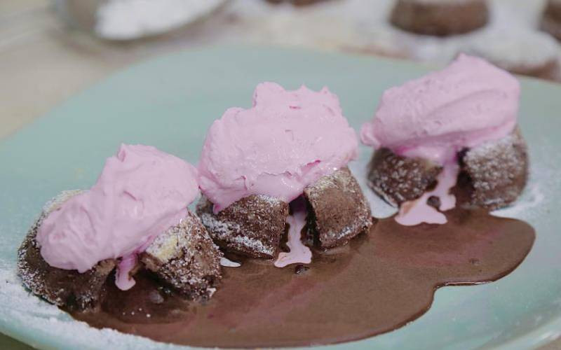 Today we make chocolate gooey muffins with strawberry ice cream.