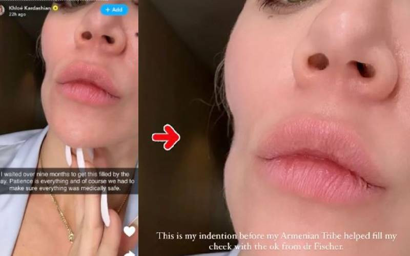 On 11 October, Khloe took to Snapchat, posting photos of a noticeable indentation on her right cheek, caused by the surgery.