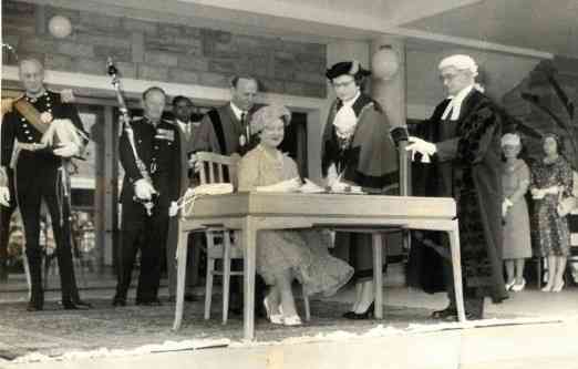 Queen mother signing a visitor's book at City hall, Nairobi in February 1959. [File, Standard]
